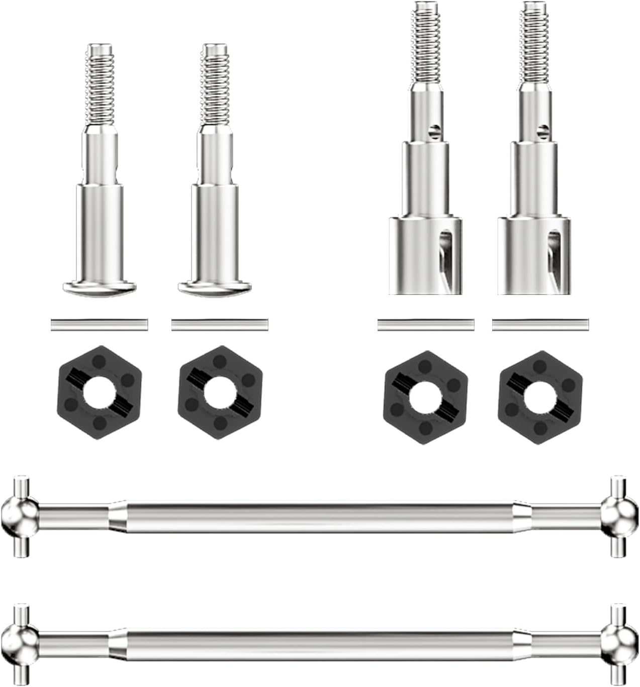 - Accessories List: Front metal axle x2,Rear metal axle x2,2*10 hexagonal iron axle x4,Hexagonal adapter x4,Metal CVD x2