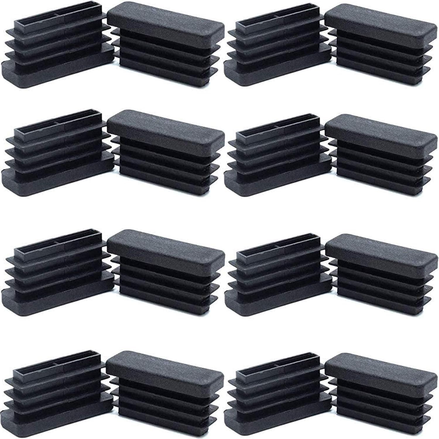 1/2" x 1 1/2" Rectangle Tubing End Caps, 13mm x 38mm Tubing Post End Cap Black Plastic Plugs, Chair Glide Floor Protector (16 Pack)