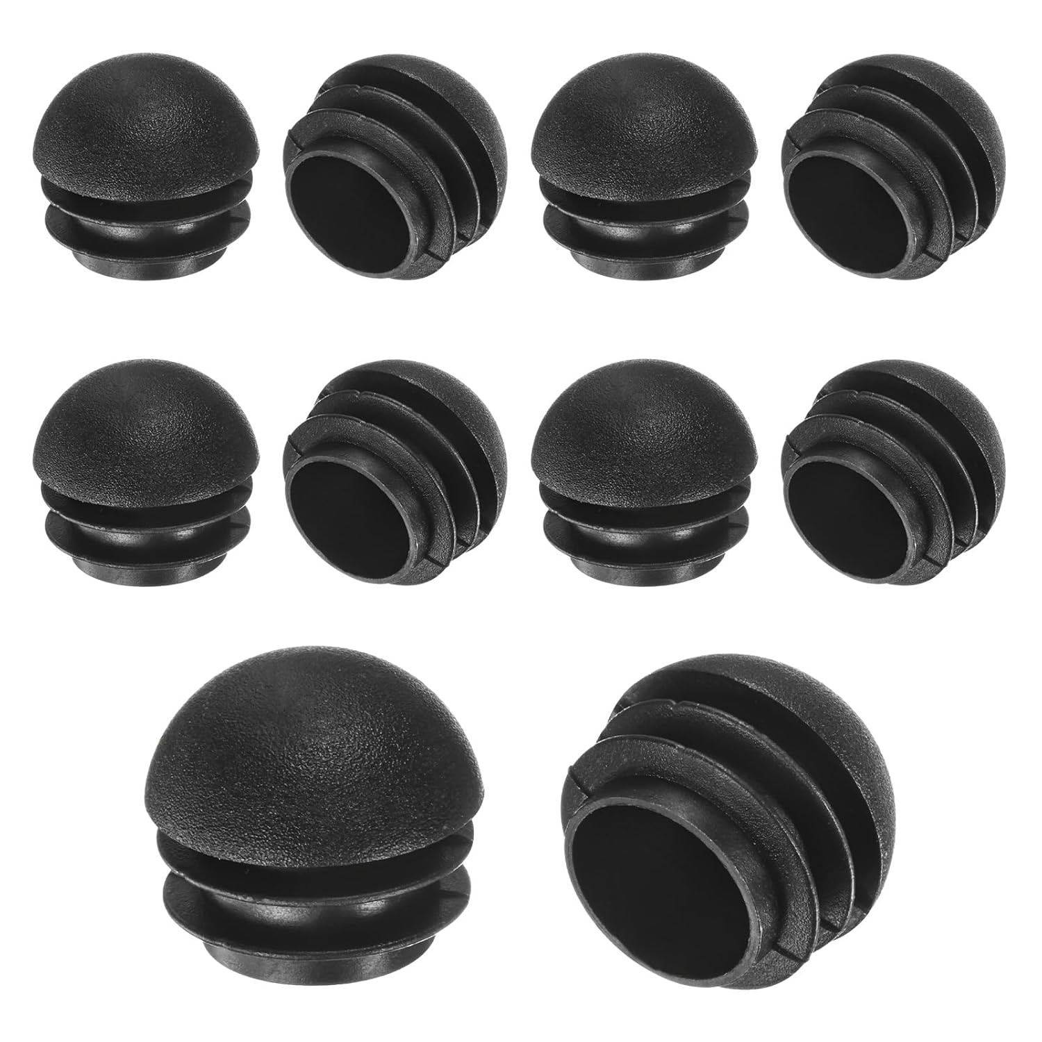 PRODUCT APPLICATION Round pipe covers are suitable for most metal pipes, such as chairs, bar stools, fences, mechanical pipes, metal bumper pipes and other round pipes, preventing wear and tear on floors and rust on water pipes. PRODUCT DETAILS √ Type: Spherical plastic hole plugs√ Material: Plastic√ Color: Black√ Size: 1" (25mm) Dia√ Package Includes: 10 pcs x Round plastic hole plugsPRODUCT ADVANTAGES 1. Round plastic hole plugs are made of premium plastic, which is impact-resistant and wear-resistant and has a long service life. The insertion part has a plastic ribbed ring to clamp the pipe and will not fall off easily.2. Round plastic furniture pads protect floors from scratches and reduce noise when moving furniture. Suitable for solid wood floors, tile floors and carpets. INSTALLATION Easy to install and remove, easily insert into round ducts with just a gentle push in or a tap with a small hammer.