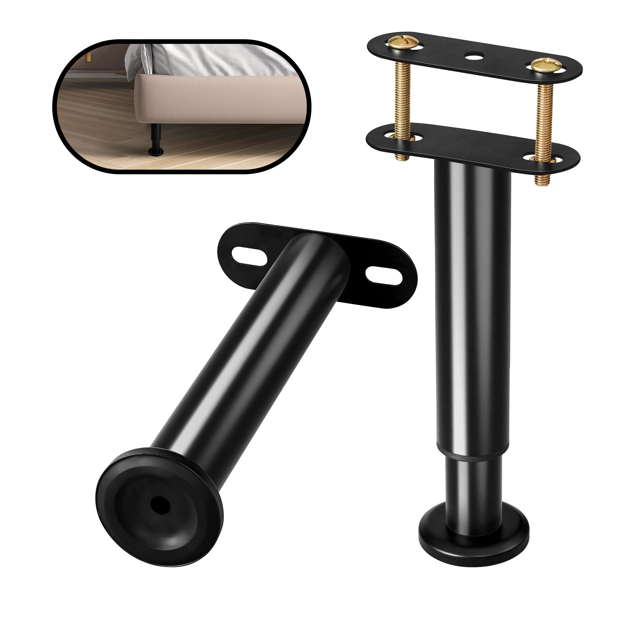 Tip: Please measure the distance from your bed frame to the floor before you buy, and pick the right size bed support legs to avoid buying mistakes.This is a adjustable height bed frame center support leg, suitable for different heights of the bed frame, can perfectly solve the problem of bed frame shaking and making noisePackage includes:2 pcs adjustable height bed support legs, 4 pcs x mounting screws, 2 pcs supplementary plate. Size: our adjustable bed legs are available in 3 sizes, adjustable height:5 inches (adjustable from 5 " to 8.6 ")7 inches (adjustable from 7 " to 12.6 ")10 inches (adjustable from 10 " to 16.5 ").Material: The bed center slat support legs are made of high quality metal, not easy to rust and corrosion, not easy to damage, we also thicken the wall of the bed support leg tube, so that it has a stronger load-bearing capacity.Application:These bed frame legs replacement are good support for metal bed frames, wooden slat bed frames, sofa beds, sofas, chairs, TV cabinets, cabinets, shelves and other furniture.Features:1. The base size of the bed frame support blocks leg is upgraded and expanded from 1.2 inches to 2.33 inches, which can provide more stable support for the bed frame.2. The bed reinforcement kit with thick rubber base will not damage the floor and allow the bed frame to move without noise. Warm tip: Using 8-10 bed slat support legs at the same time can bear the weight of the bed frame more evenly, saving you the cost of furniture repair and furniture replacement.Quality Guarantee:If there is any quality problem, please feel free to contact us. Refund or Replacement for any quality problem.